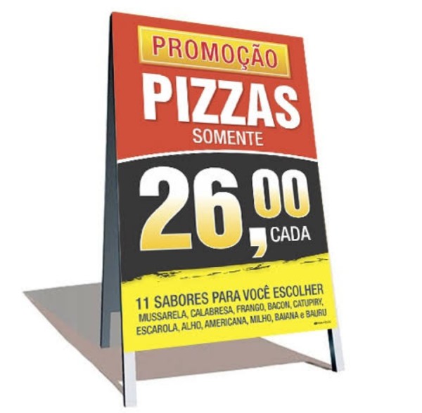 Geralmente colocado do lado de fora do estabelecimento em calçadas, corredores para gerar visibilidade aos transeuntes.